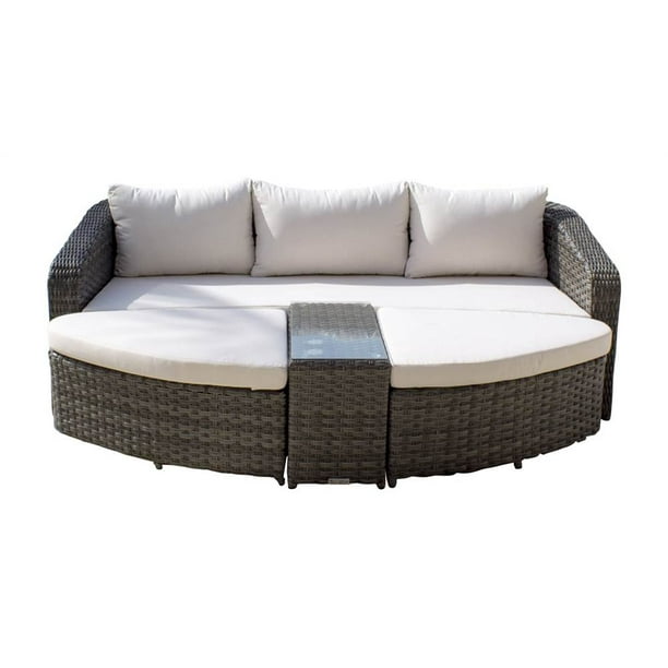 4 Pc Outdoor Daybed Set With Cushions In Gray Sunbrella Ultra Almond Walmart Com