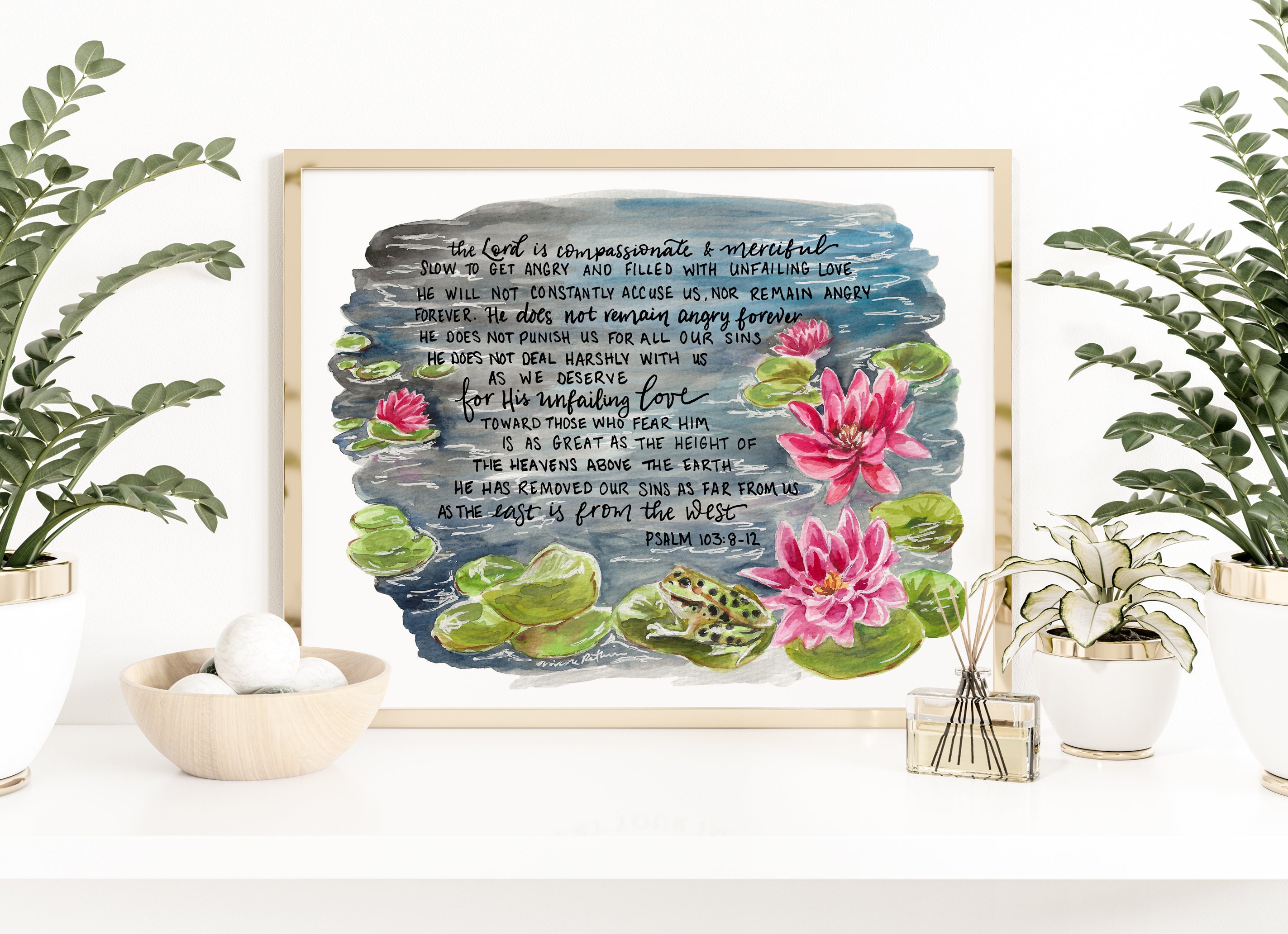 Bible Verse Water Lilies And Frog Watercolor Print Psalm Etsy